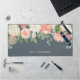 Joli et féminin, ce design attrayant présente un éventail de fleurs mélangées d'aquarelle dans les tons pêche, rose et blanc sur un arrière - plan gris profond. Modifiez le nom avec votre propre nom, ou vous pouvez supprimer le nom si vous préférez l'élément sans lui. Vous pouvez également modifier la couleur grise de l'arrière - plan avec la couleur de votre choix du bouton de modification et de la sélection d'une autre couleur dans le sélecteur de couleurs arrière - plan.