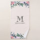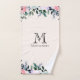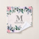 Serviette au joli design floral aux aquarelles. Fleurs de jardin roses, violettes et vertes. Personnalisez avec votre nom et le monogramme initial.