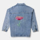 Cette veste de Denim Floral Pink Watercolor présente un pavot rose à l'aquarelle et une citation de Ralph Waldo Emerson "la terre rit dans les fleurs".