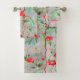 Cet élégant ensemble de serviettes de bains fleuries dispose d'un arrière - plan gris avec des roses d'aquarelle rouge et corallienne. Conçu par un artiste mondialement connu ©Tim Coffey.