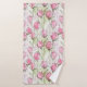Serviette de bain rose et vert aquarelle rosebud. Conçu avec des motifs rosebud à grande échelle en rose et vert doux. Personnalisez la serviette à main avec votre nom ou monogramme.