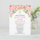 Elégante aquarelle rose vif rose floral bébé fille Baptême design d'invitation avec des fleurs dans un bouquet de type swag haut entourant les détails de votre bébé doux. Une croix de trinité dorée se trouve sous le motif floral, et le fond est un arrière - plan rose marbré. Ce design floral composite est réalisé par Holiday Hearts Designs (droits réservés).