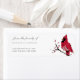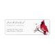 Un cardinal rouge aquarelle peint à la main sur une élégante étiquette d'adresse de retour