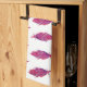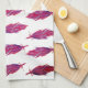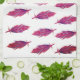 Serviette à thé motif en plumes d'aquarelle rouge et violet.