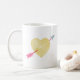 Mug aux coeurs jaunes et roses, flèches illustrations et initiales. Ajoutez vos noms. Le meilleur pour la Saint Valentin.