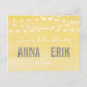 Le design mariage Watercolor String Lights a été créé par Eggplant et Purple. Ce design moderne comprend une série de lumières avec un étonnant arrière - plan jaune citron.