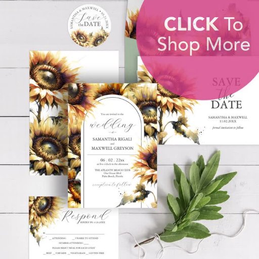 Entrez dans le charme d'un mariage d'été avec notre invitation tournesol aquarelle, où l'allure rustique rencontre l'audace des fleurs luxuriantes dans les tons jaunes. L'invitation est magnifiquement accentuée avec dans la typographie de script moderne, complété par un design d'arc. La carte de faire-part de mariage formelle inverse pour révéler plus de tournesols. Découvrez le thème mariage complet, y compris les téléchargements numériques et des exemples d'invitations, à Do Tell A Belle sur Zazzle, www.zazzle.com/dotellabelle. Parfait pour les mariages de jardin et de destination toscane. Ce design exquis et cette vision créative ont pris vie par Victoria Grigaliunas.