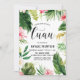 Une invitation luau luau ludique et ludique avec hibiscus aquarelle, feuilles de palmiers, feuilles de bananes et autres accents tropicaux. Cette invitation personnalisable est parfaite pour les événements d'été.