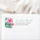 Cette élégante étiquette d'adresse de retour d'aquarelle tropicale présente ma fleur d'hibiscus rose peinte à la main d'origine et des feuilles de palmiers monstères dans les tons turquoise, bleu et vert sur un arrière - plan blanc immaculé. Vos noms et vos coordonnées de retour sont définis dans un script à la main moderne et sans serif police en vert et noir. Personnalisez avec votre nom et votre adresse dans les champs modèles. Parfait pour Florida Keys, les mariages hawaïens et de destination ou les douches à thème tropical. Pour voir d'autres dessins botaniques de Victoria Rigali visitez DoTellABelle sur Zazzle.
