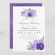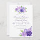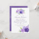 Aquarelle faire-part de mariage fleurie avec couleur de l'année 2018 ultra violet avec des nuances de violet et vert sauge. Les fleurs comprennent hydrangée, lavande, pivoines et roses.