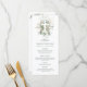 Menu Baptême - Ce design présente une illustration du feuillage vert et or en aquarelle. Sur le feuillage vert il y a une image de croix.