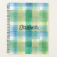 Amusant planificateur plaid vert et bleu aquarelle avec un nom personnalisable, parfait pour rendre à l'école ou le début de l'université mémorable.