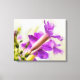 Mon oeuvre photographique originale avec ma photo originale de fleurs de trompette de mandeville violette, gros plan. Photographie traitée dans une technique de peinture aquarelle pour un style artistique. La taille de cette pièce d'art est de 20" x 16". Cette oeuvre d'art en toile est de qualité galerie avec une impression exceptionnelle et sera belle sur votre mur.