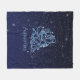 Fleece blanket featuring the symbol for Aquarius in soft silver blue, overlaid with the stars of the constellation, against a starry sky background graded from deep midnight blue to black.