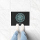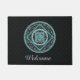 This mandala was designed for the zodiac sign, Aquarius, depicting a turquoise stone in the centre surrounded by elements representing the sign, such as the symbol for the sign, the constellation, and the alchemical symbol for Air, as well as filigree vines and weaves wrapping it all into a solid image in shades of turquoise, silver, and black. Customize the text on this doormat with your own preferred greeting or remove it entirely to make a unique decoration for your entryway.