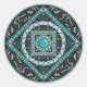 This Aquarius themed mandala features a turquoise stone surrounded by the symbol for the sign, the constellation, and the alchemical symbol for Air among filigree and weaves.