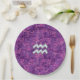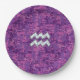Aquarius Sign on fuchsia pink digital camo Paper Plate