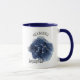 This coffee mug features an artistic representation of the Aquarius constellation set against a watercolor backdrop that mimics a starry night sky. The design incorporates shades of deep blue and white, suggesting the vastness and mystery of space. An optional custom name gently curves above the constellation and can easily be changed or removed by clicking "Personalize this template". The constellation itself is depicted by simple white lines connecting stars, which are represented by brighter white dots. Below the constellation, the word “Aquarius” is written in a clear, bold typeface, grounding the design with a touch of modernity.