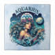A fun horoscope sign Aquarius ceramic tile with a pretty celestial illustration of a water bearer woman in front of stars and a full moon.