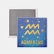 Aimant personnalisé pour "Aquarius" avec symbole zodiaque doré, étoiles dorées et arrière - plan dégradé bleu.