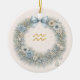 Celebrate the visionary, free-thinking spirit of Aquarius with this elegant zodiac Christmas ornament. Featuring a watercolor winter wreath in cool blue and silver tones with celestial details and delicate dangling accents, this design reflects Aquarius’ originality, intellect, and cosmic nature. Set on a warm ivory background with the Aquarius glyph at center, it’s perfect for Christmas trees, garlands, or as a unique astrology gift.