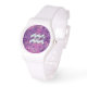 An Aquarius zodiac symbol on a fuchsia pink digital camouflage design texture print background. A modern urban racy design for a great custom birthday fashion watch gift idea for her.