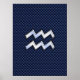 A silver chrome like Aquarius Zodiac symbol on a royal blue carbon fibre texture print background. A modern urban racy design for a great custom birthday gift idea.