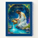 Journal in a celestial image of the Aquarius zodiac sign, featuring a man in ornate white robes with gold embroidery, kneeling beside a tranquil pool under the stars. He pours water from an intricately decorated golden urn under a starlit sky.