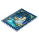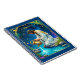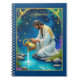 Notebook in a celestial image of the Aquarius zodiac sign, featuring a man in ornate white robes with gold embroidery, kneeling beside a tranquil pool under the stars. He pours water from an intricately decorated golden urn under a starlit sky.