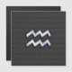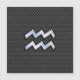 A silver chrome like Aquarius zodiac symbol on a charcoal carbon fibre style design texture print background. A modern urban racy design for a great custom birthday gift idea.