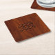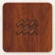 Aquarius Zodiac Symbol Mahogany Style Square Paper Coaster