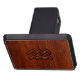 An Aquarius zodiac sign on a mahogany wood grain style design texture print background. A modern classy racy design for a great custom birthday gift idea.