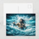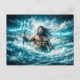 Aquarius Zodiac with Trident Warrior in Stormy Oce Postcard
