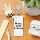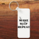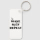 This keychain features a dynamic graphic design of a person wake surfing, with a stylized wave below and a bird flying overhead. The words “WAKE SURF REPEAT” are prominently displayed above and below the surfer in bold, capital letters. This design captures the thrill and excitement of wake surfing, making it a perfect accessory for water sports enthusiasts.