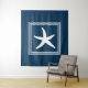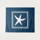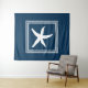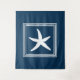 Aquatic themed design with starfish decoration in striped squares on blue background