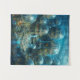 A mesmerizing tapestry design featuring an ethereal underwater city with illuminated domes, intricate architecture, and floating bubbles, creating a tranquil yet captivating fantasy world.