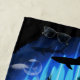 Surreal Black Cat moving on the bottom of a deep surreal blue Ocean, surrounded by sharks, fishes, algae, bubbles, like a magical dark dream. Digital Art Copyright BluedarkArt.