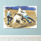There is an abstract WHITE thin background frame around the action packed Texas style Country Rodeo wall art.