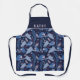 Ara Parrot Blue Tropical Leaf Pattern Name Apron. Blue ara pattern on dark blue background with tropical leaves. Add your name or erase it.