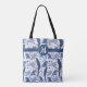 Ara Parrot Blue Tropical Leave Pattern Monogram Tote Bag. Ara pattern with tropical leaves in blue and pink colours. Add your monogram.