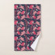 Ara Parrot Red Pink Drawing Tropical Leave Pattern Bath Set. Ara pattern on dark blue background with tropical leaves in green, red and beige colours. Great for parrot lovers and parrot owners. Also available with monogram - open the collection bellow.