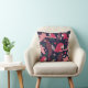 Ara Parrot Red Pink Drawing Tropical Leave Pattern Throw Pillow. Ara pattern on dark blue background with tropical leaves in green, red and beige colours. Great for parrot lover and ara owner.