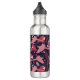 Ara Parrot Red Tropical Leave Pattern Monogram water bottle. Ara pattern on dark blue background with tropical leaves in green, red and beige colours. Hand-drawn illustration. Add your monogram.