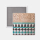 A beautiful eye catching magnet. The design features a photograph of contrasting mosaic tiles and sandstone etchings. Your refrigerator will feel all the better for a touch of arabesque!