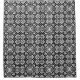 An arabesque, geometric, mosaic tile pattern in black and white