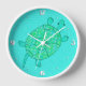 Arabesque swirl turtle - shades of seafoam green wall clock