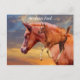 A photograph collage of an Arabian foal and a colourful sunset, displayed on a postcard. This foal's sire is a champion show horse. --- Photo is copyrighted by the photographer, Christina Spiegeland.