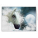 A white Arabian horse set against the backdrop of the moon and clouds