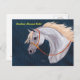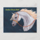 A reproduction image from an original oil painting of a Grey Arabian Horse wearing a show halter, displayed on a Postcard. -- Artwork is copyrighted by me, the artist.