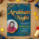 Step into a world of mystique and be enchanted on this Arabian Night invitation. This invitation was made special by using captivating background colour with complimenting gold and diamond decorations to capture the vibrancy and allure of a Arabian themed party.